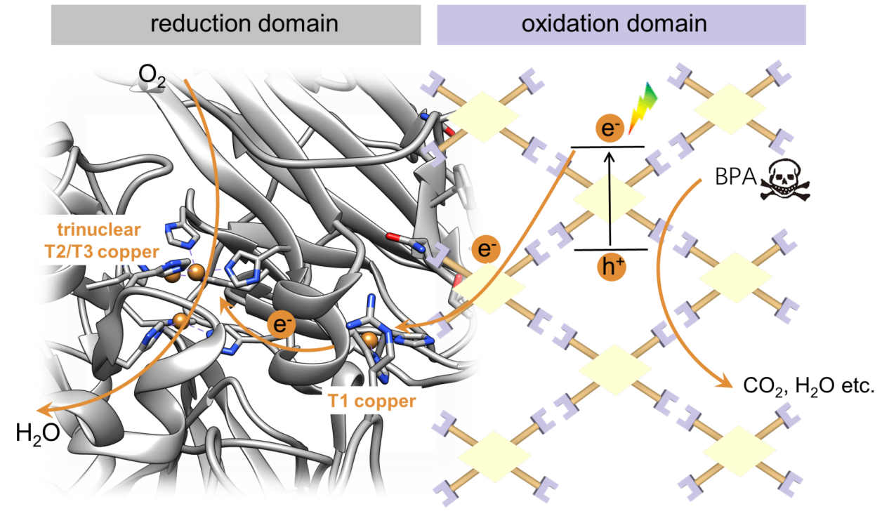 自然界中,光合作用是光-酶催化的典型代表。葉綠素分子吸收太陽光子,在酶的幫助下,通過一系列復雜的化學反應將其轉化成自身能量。受此啟發,科學家們開發了一系列光-酶催化劑,希望在低能耗和低成本的條件下實現太陽光的高效利用。然而,當前光催化劑與生物酶之間的電子轉移效率低下、生物兼容性差以及高昂的輔助介質成本,極大地限制了該技術的應用。