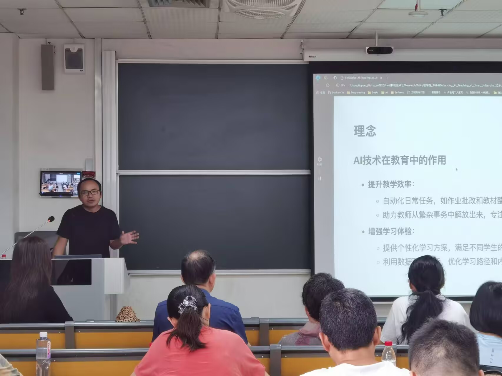 暨南大學融媒體中心訊 9月12日下午,由本科生院教師發展中心組織舉辦的“品味教學”第53期:“如何以‘人工智能+’賦能課堂教學”在石牌校區教學大樓A507室舉行。講座由我校教學名師、全國高校教師教學創新大賽二等獎獲得者、物理與光電工程學院教師劉鵬擔任主講嘉賓,不同學科的教師齊聚熱議“人工智能+”。講座由本科生院教師發展中心主任張沫主持。