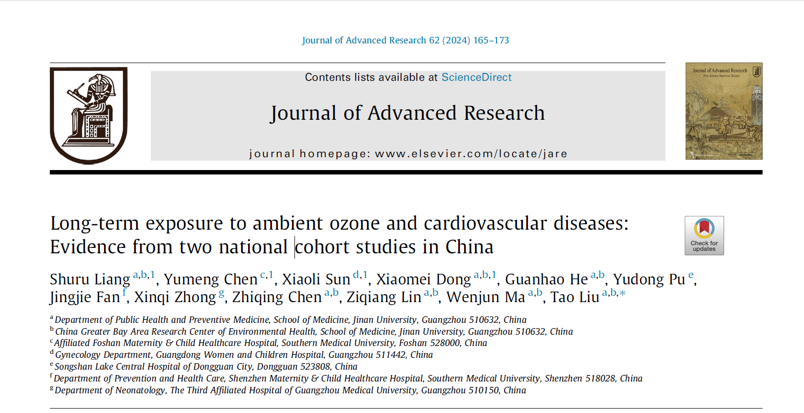 暨南大學融媒體中心訊 基礎醫學與公共衛生學院馬文軍/劉濤教授團隊在《Journal of Advanced Research》(IF:11.4)雜志上發表了題為“Long-term exposure to ambient ozone and cardiovascular diseases: Evidence from two national cohort studies in China”的重要研究成果(圖1)。